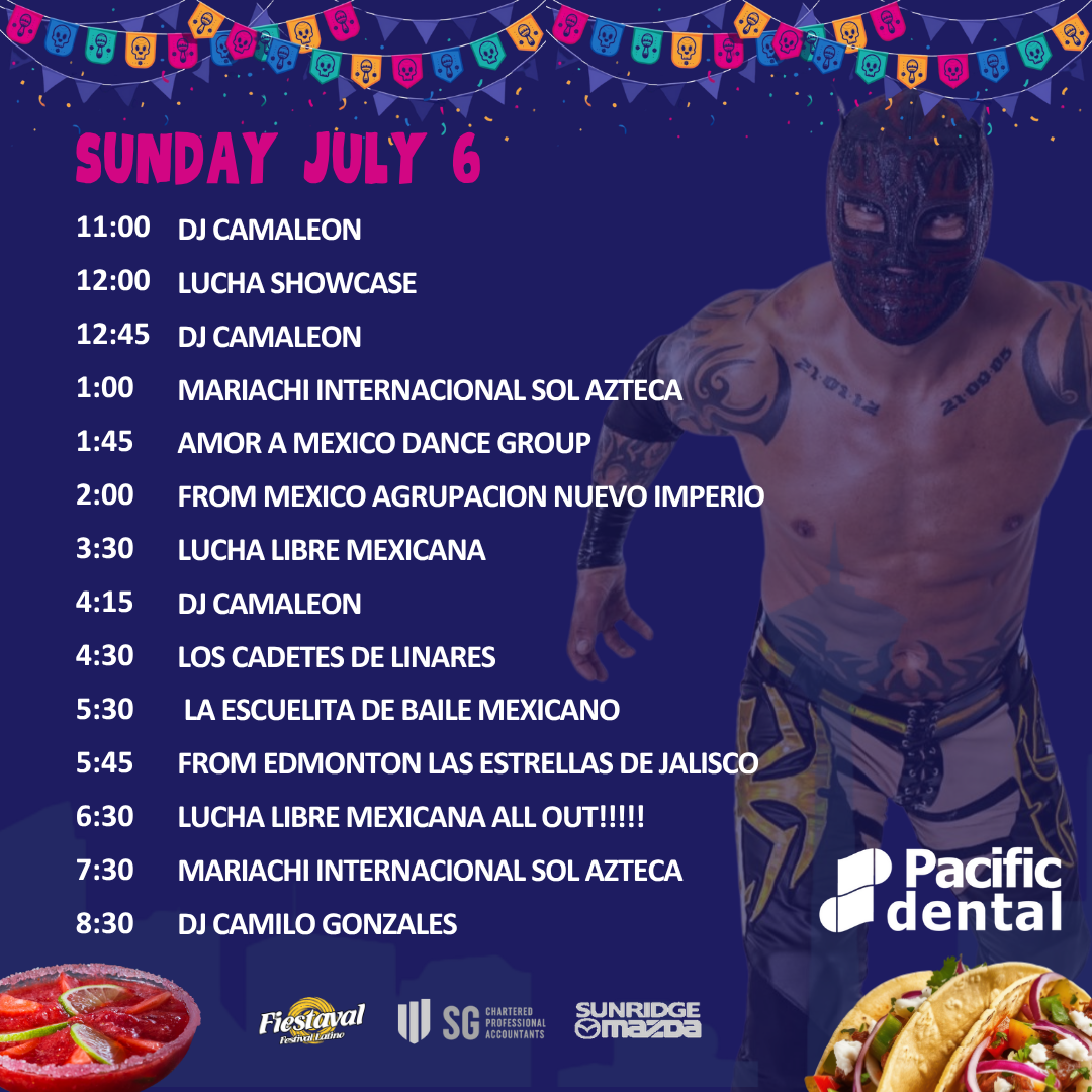 Enjoy live performances from Mariachi Internacional Sol Azteca, vibrant folkloric dancers, and exciting local acts like Neri Villanueva y su Norteño Band and DJ Camaleón.